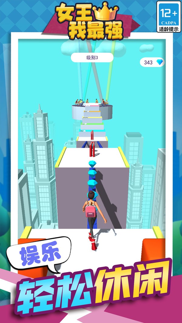 女王我最强是一款很有意思的休闲跑酷类休闲小游戏,而女王我最强在跑酷的过程中,还加入了独特的收集玩法,玩家需要在跑酷的过程中收集遇到的高跟鞋,一直堆叠高跟鞋的高度,让自己不断的提升高度,越过跑酷过程中遇到的障碍物完成关卡。
