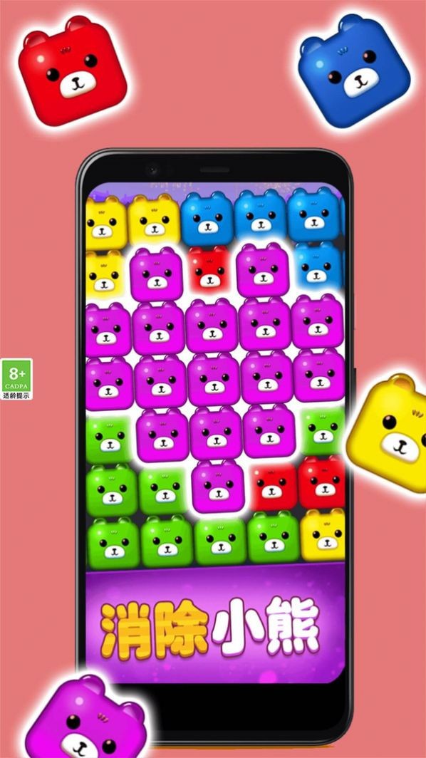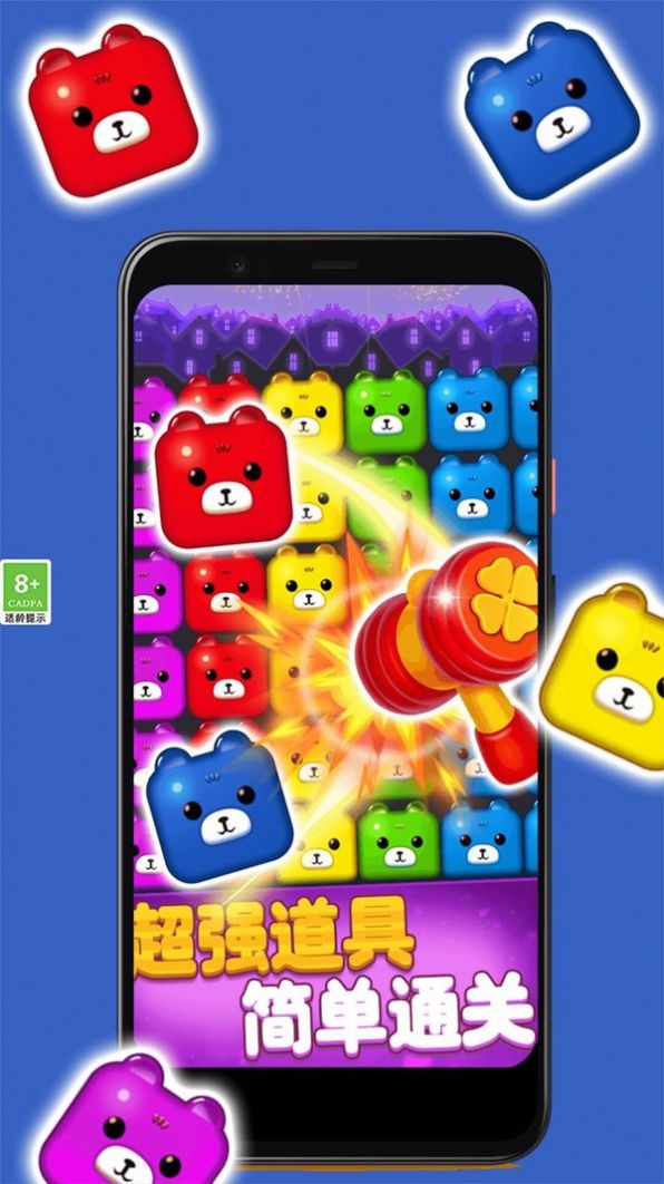 游戏中的主角是一个可爱的小熊,玩家需要操作该角色进行游戏,通过消除三个或三个以上相同的方块来获得游戏生命和积分。随着游戏的深入,难度会逐渐增加,需要玩家采用更加策略性和技巧性的操作方式来闯过难关。