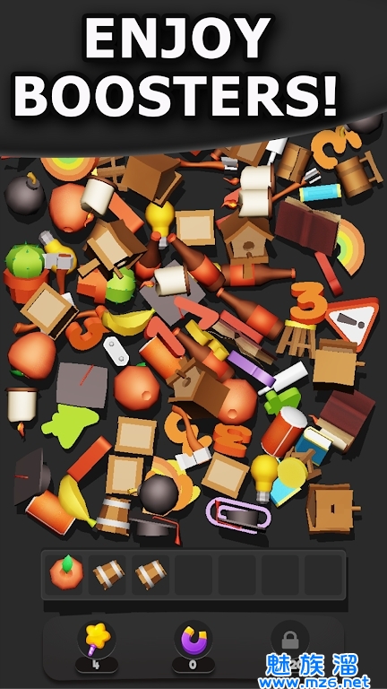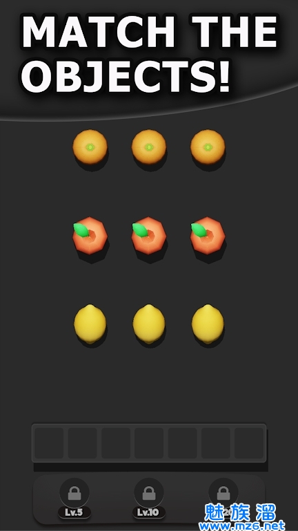 1、玩家需要用手指在屏幕上滑动来匹配三种相同的物品;