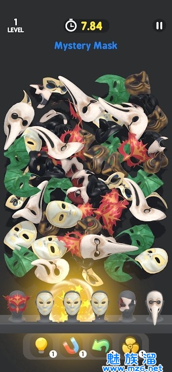 神秘的面具匹配游戏,这是一款节奏非常快的趣味解压游戏,