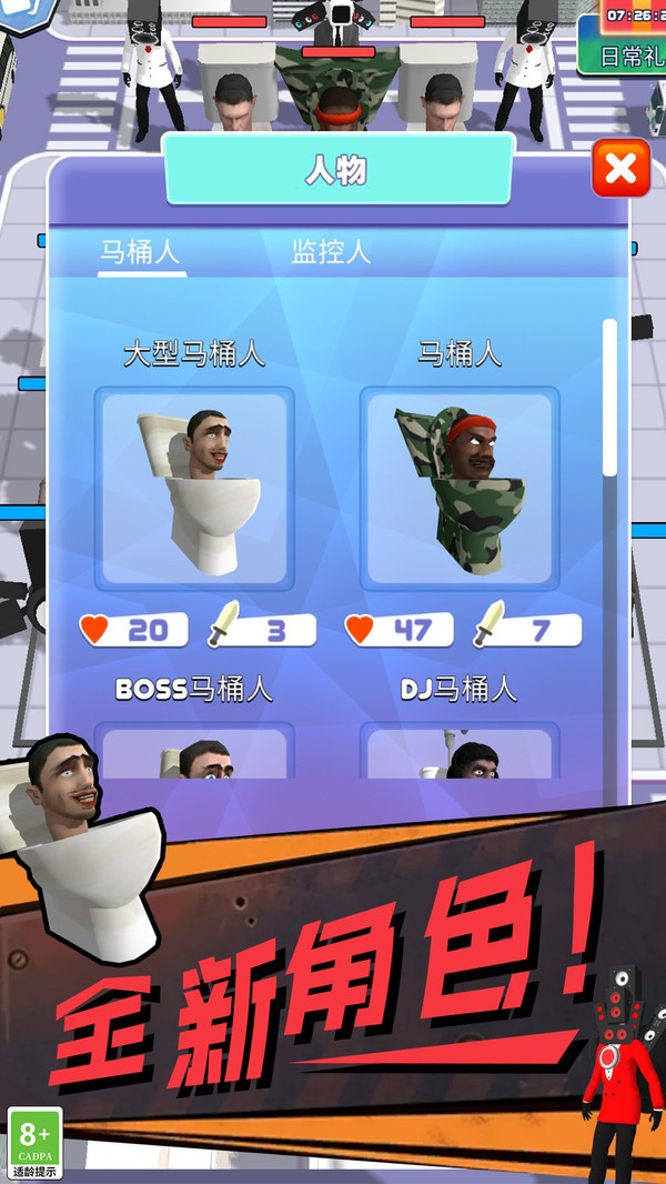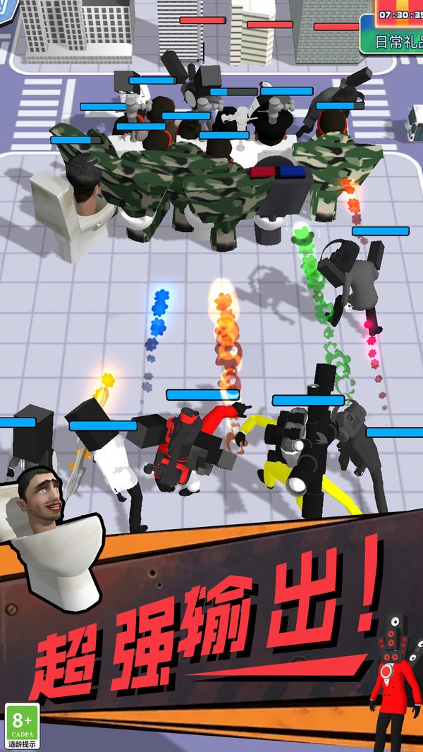 超级进化战争是一款以马桶人、监控人、电视人等变异人为背景打造的角色扮演类战争策略游戏,游戏中玩家可以通过不断的完成任务来获取自己的变异人士兵,让这些士兵组成一个属于自己的专属战斗军团,带领它们不断的战斗来提升变异人的能力,达成一个强大的变异人军团。
