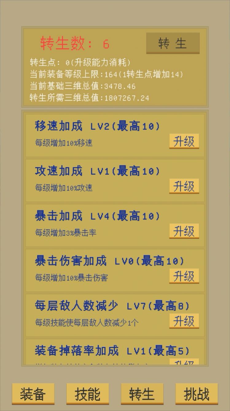 3、每一次对战你都可以从中积累经验,然后去转生或者解锁装备,享受快感;
