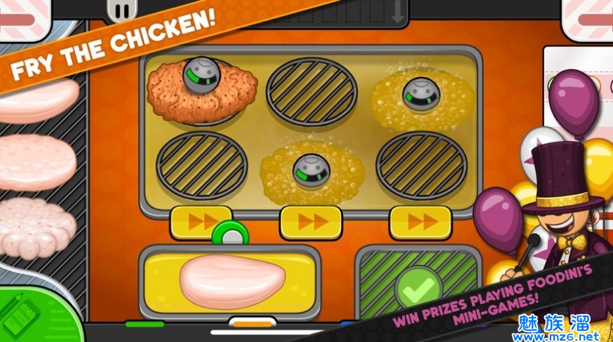 2、游戏具有极强的可玩性,你可以为你的汉堡添加各种各样的口味;制作美味的炸鸡,使每个玩家都拥有崭新的体验,越美味,越会受到人们的欢迎。