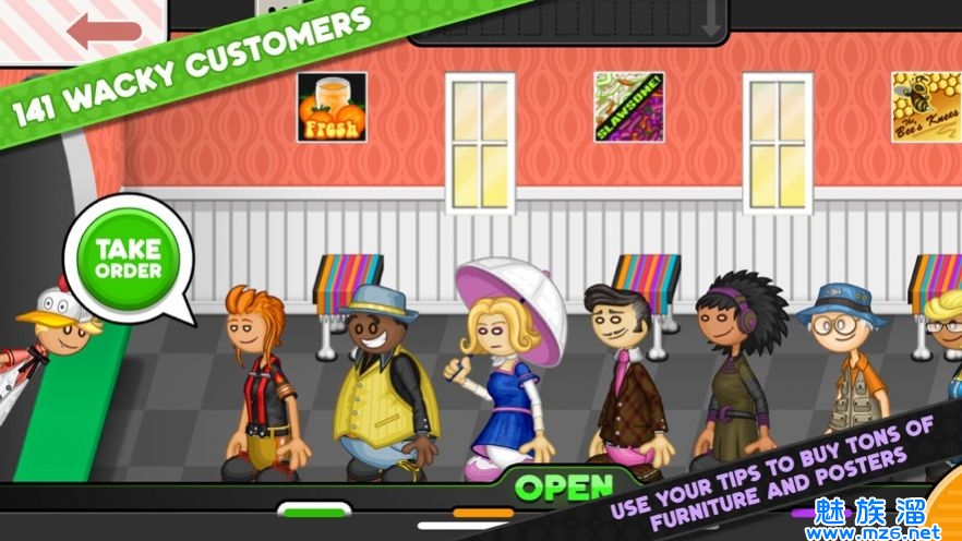 1.老爹鸡肉堡店游戏是一款好玩的经营游戏,这次的主题是鸡肉汉堡店,作为老板,你可以自由的进行管理,尝试制作各种各样的汉堡,升级口感,