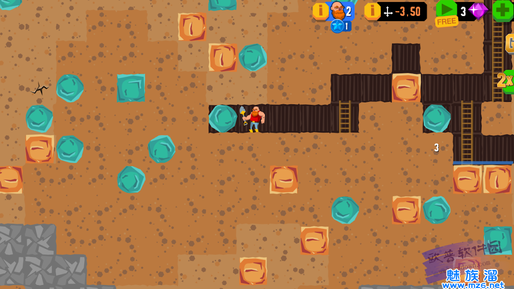 3.复古像素风格呈现地底世界,光头矿工勇闯神秘矿脉,趣味横生;挖掘探索未知地下城,搜集丰富矿石资源,升级装备打造挖矿传奇;