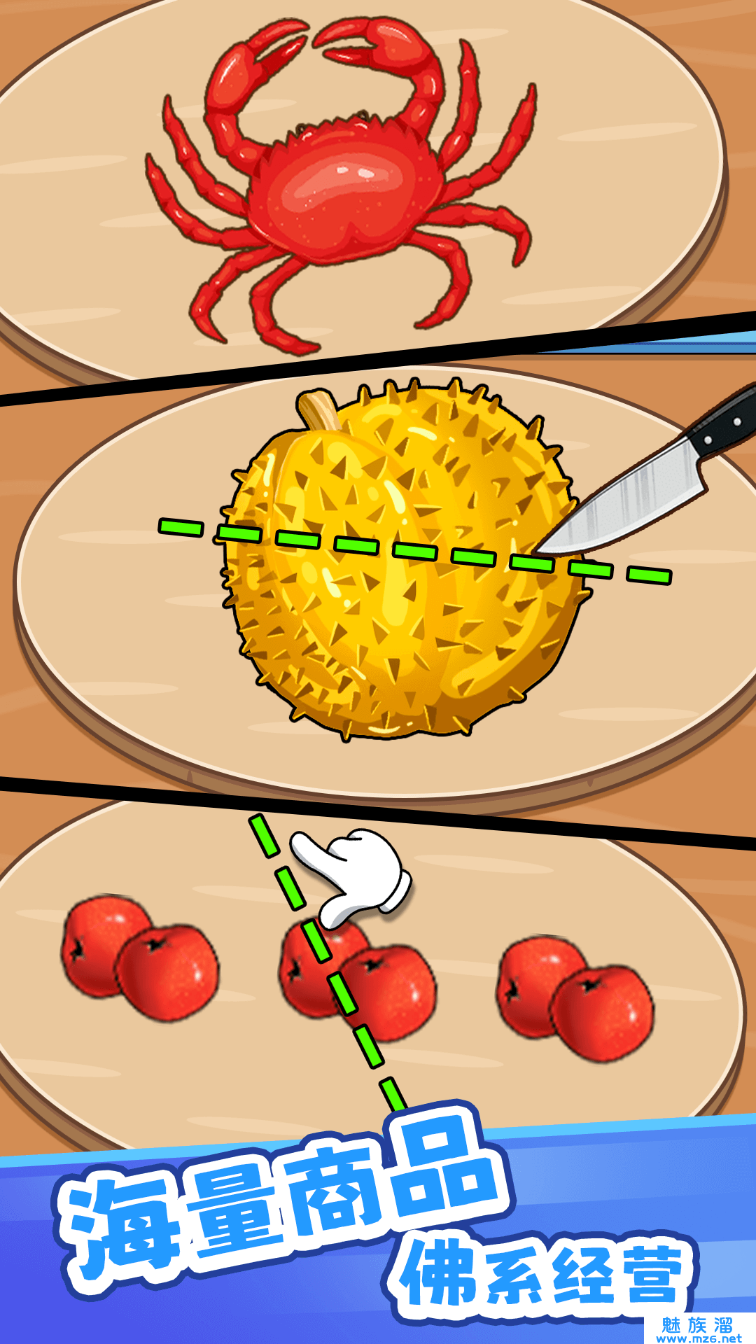 游戏通过切割不同的物品,