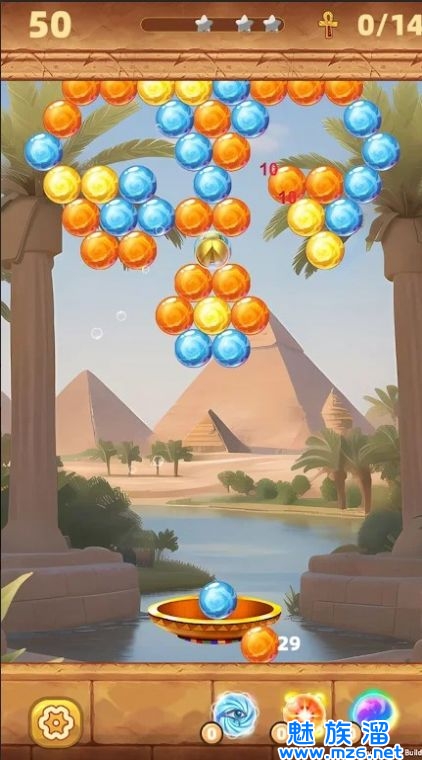 3、游戏的玩法十分简单,只需要将屏幕上的相同颜色泡泡射出并消除,通过消除泡泡的方式进入下一关卡。