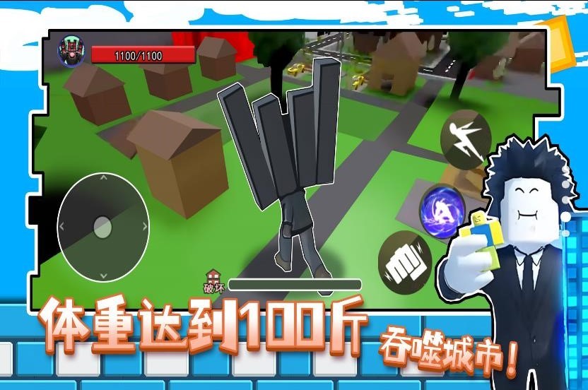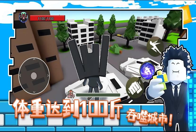 操控巨人在城市当中穿梭,努力吞噬各种建筑物,来不断增长自己的体积,进化自己的实力,与各种怪物们进行对战,魔性的画风,趣味的玩法,开放的地图场景,置身其中相当的减压,玩起来无比的兴奋。