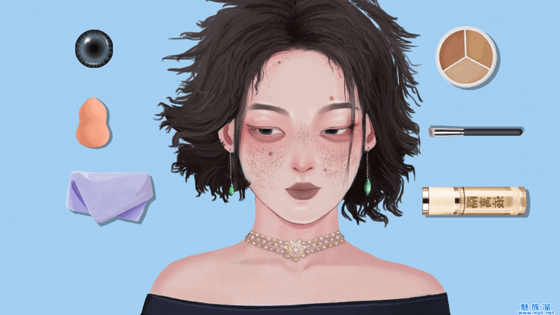1、点击屏幕中散落的化妆品,让它们飞到垃圾桶里;