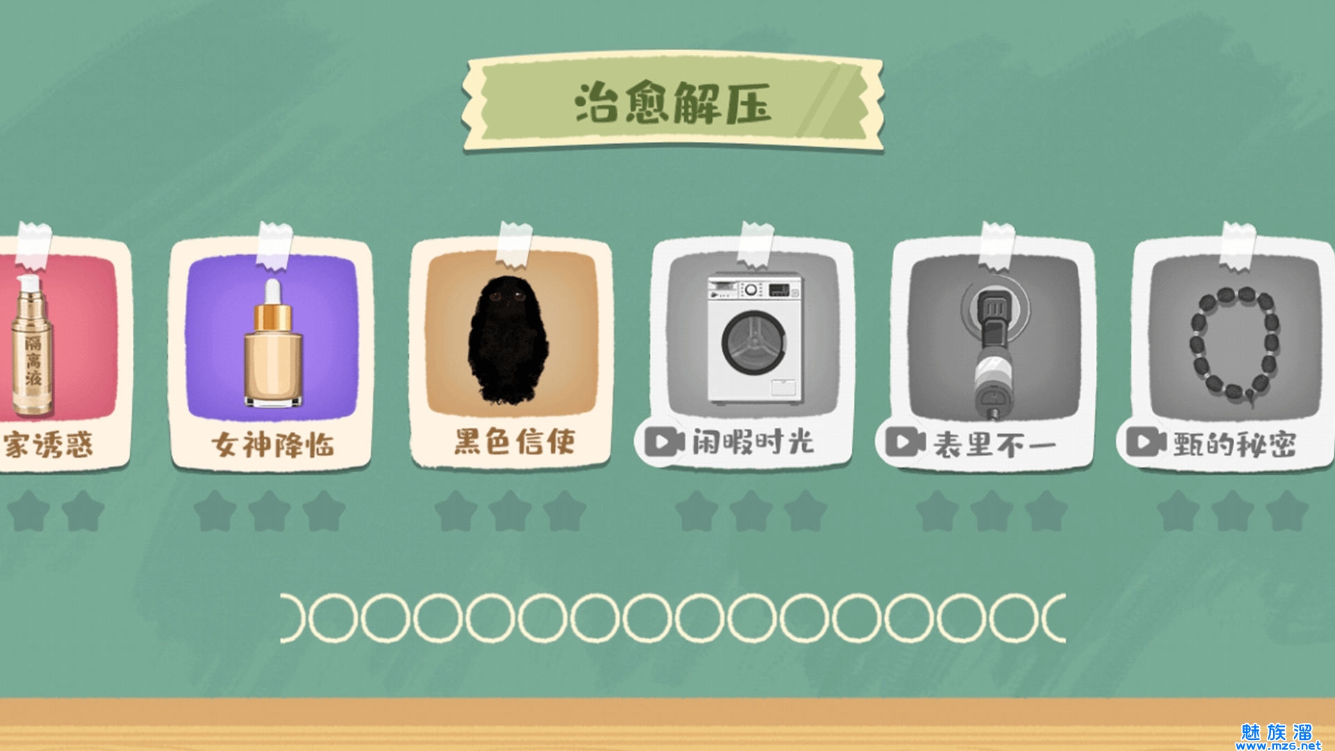 1、针对女性玩家设计的休闲解压游戏清理房间里散落的化妆品,