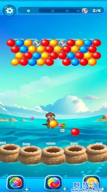 1、点击屏幕发射泡泡,将它们与相同颜色的泡泡连在一起;