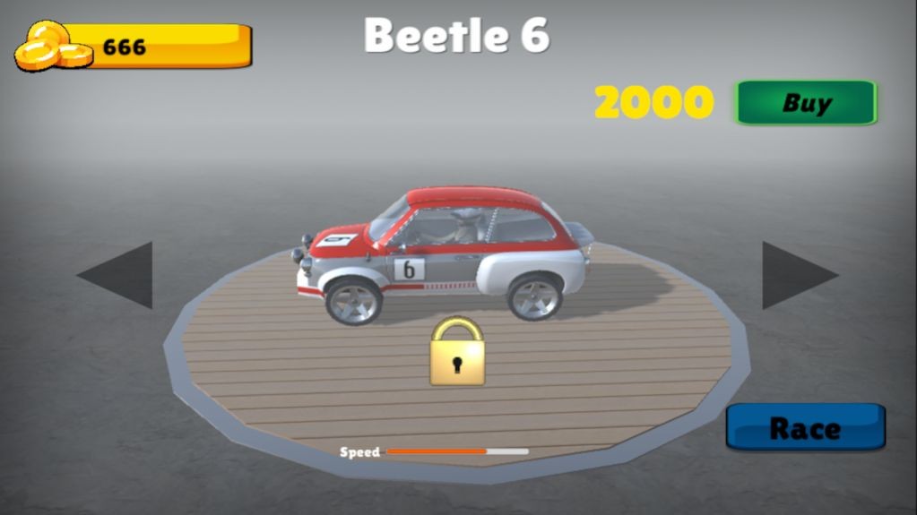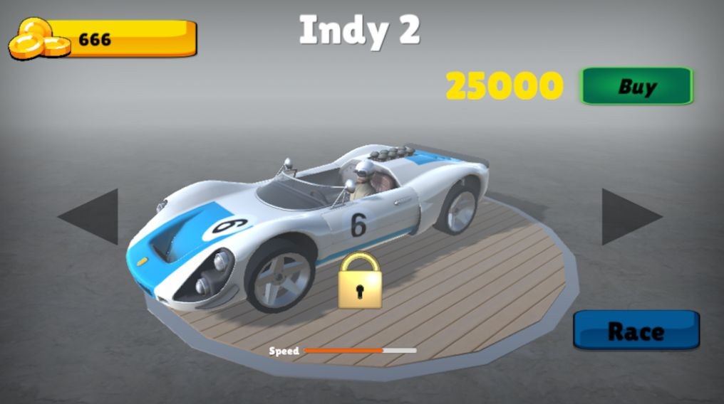 单人游戏中按难度等级进行赛道比赛,通过金币解锁更多车型。