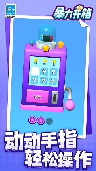 暴力开箱是一款休闲益智类趣味闯关小游戏,游戏主打开盲盒玩法,游戏中玩家可以通过任务、挑战关卡来获取各种各样的箱子,每一种箱子都能获得不同的道具、物品,玩家开箱子可以获得各种令人惊喜的道具。除此之外,还有一些特别的箱子,玩家需要解开各种谜题才能顺利开箱,获取其中的宝物。