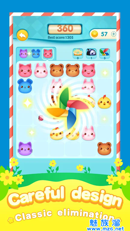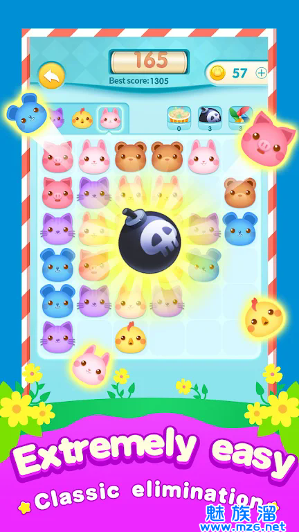 1、非常可爱的三消闯关游戏。游戏中,玩家需要通过消除宠物,来获得不同分数和道具,完成各种不同级别的游戏任务。