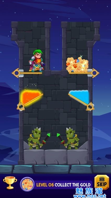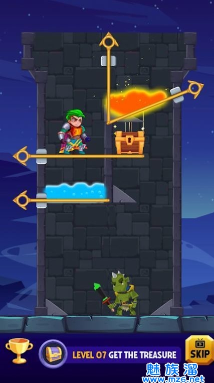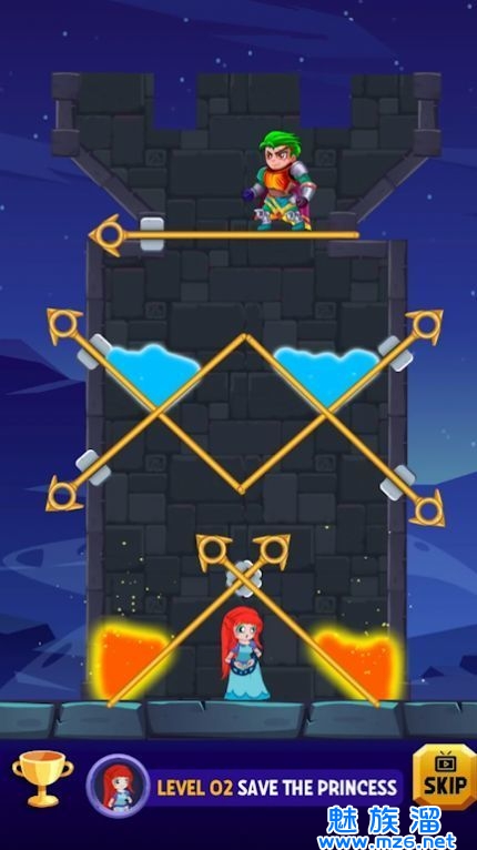 1.用手指的滑动操作,按照正确的顺序拉动销钉,清除拯救公主途中的障碍;
