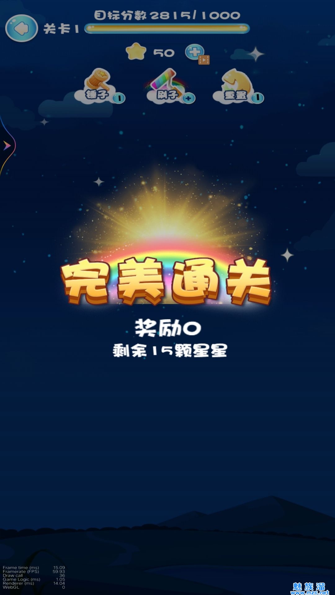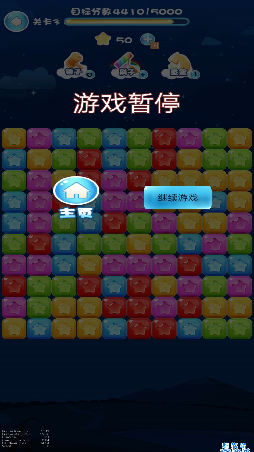 3、收集关卡内随机出现的特殊星星,触发连锁反应,高效达成目标分数。