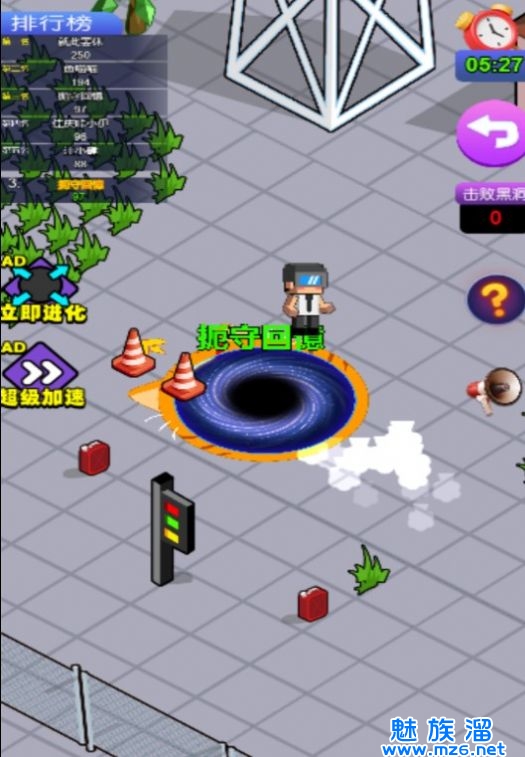 1、拥有丰富的游戏道具,例如超级黑洞、时空隧道等;