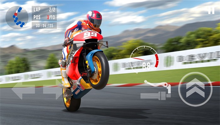 1、逼真物理引擎驱动,模拟摩托车真实驾驶手感,特技动作流畅自然;