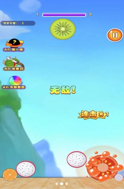 1、按照游戏中的提示不断合成相同的西瓜,使它们在屏幕上消除;