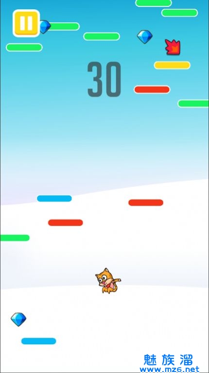 幸运虎跳跃游戏是一款上手极其简单的休闲益智游戏,游戏中有非常好玩萌趣的卡通虎形象,玩家将操控幸运虎进行跳跃,踩着持续移动的木板不断的向上跳跃,玩家要精准确认木板移动的方向与自己的跳跃落脚点,不断的收集钻石争取解锁后续的关卡与内容,游戏卡通形象可爱简约,还设置了历史分数。