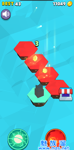 1.点击屏幕。点击屏幕的时间和力度会影响跳跃的高度和距离;