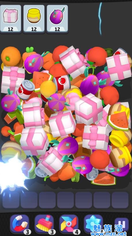 2、通过画出匹配线路,释放出更多的能量,消除屏幕中的所有方块,设计了各种元素和障碍物,