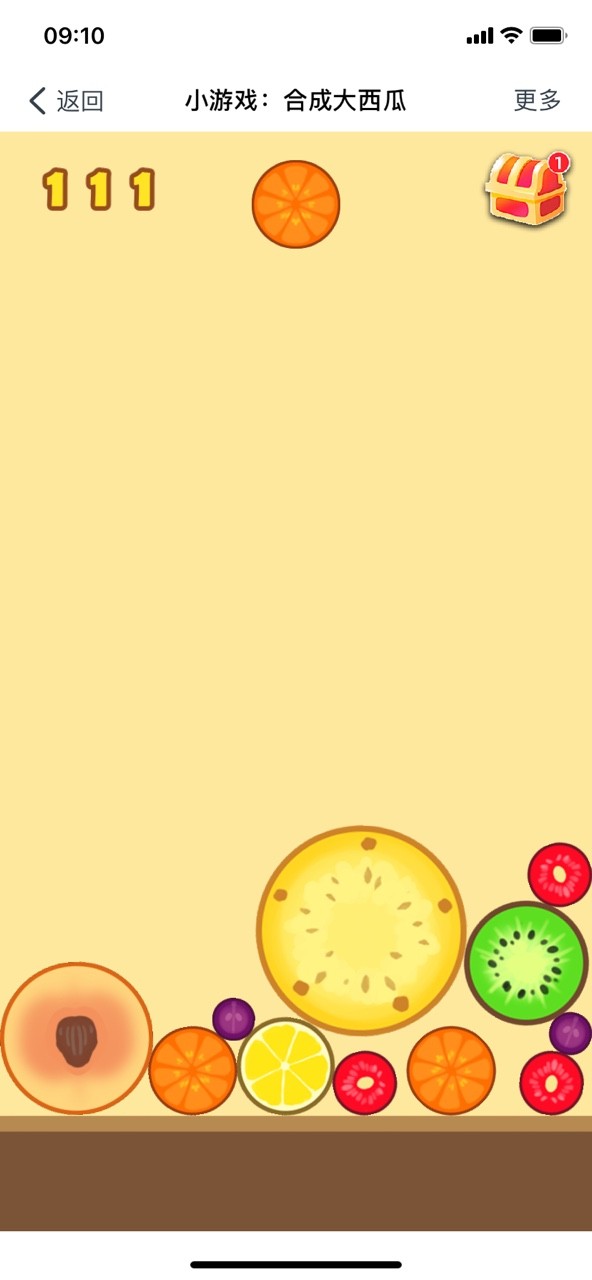 2.一开始玩建议大家有序的排列水果,遵从一个角落水果最大,越往外水果越小的感觉(类似2048),这样容易产生连续合成而节约空间。而且一旦大水果在中间很容易堆太高导致游戏失败。