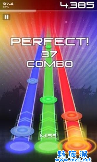 2、享受更多的节奏畅游,越嗨的音乐节奏速度也越快。如果音符判定成功,判定圈外的屏幕会闪烁不同程度的炫光,看起来非常科幻。