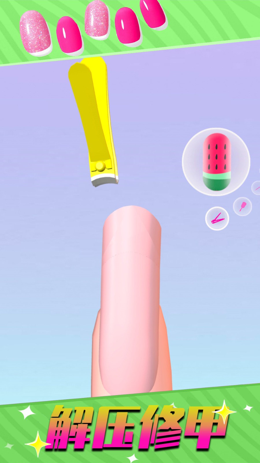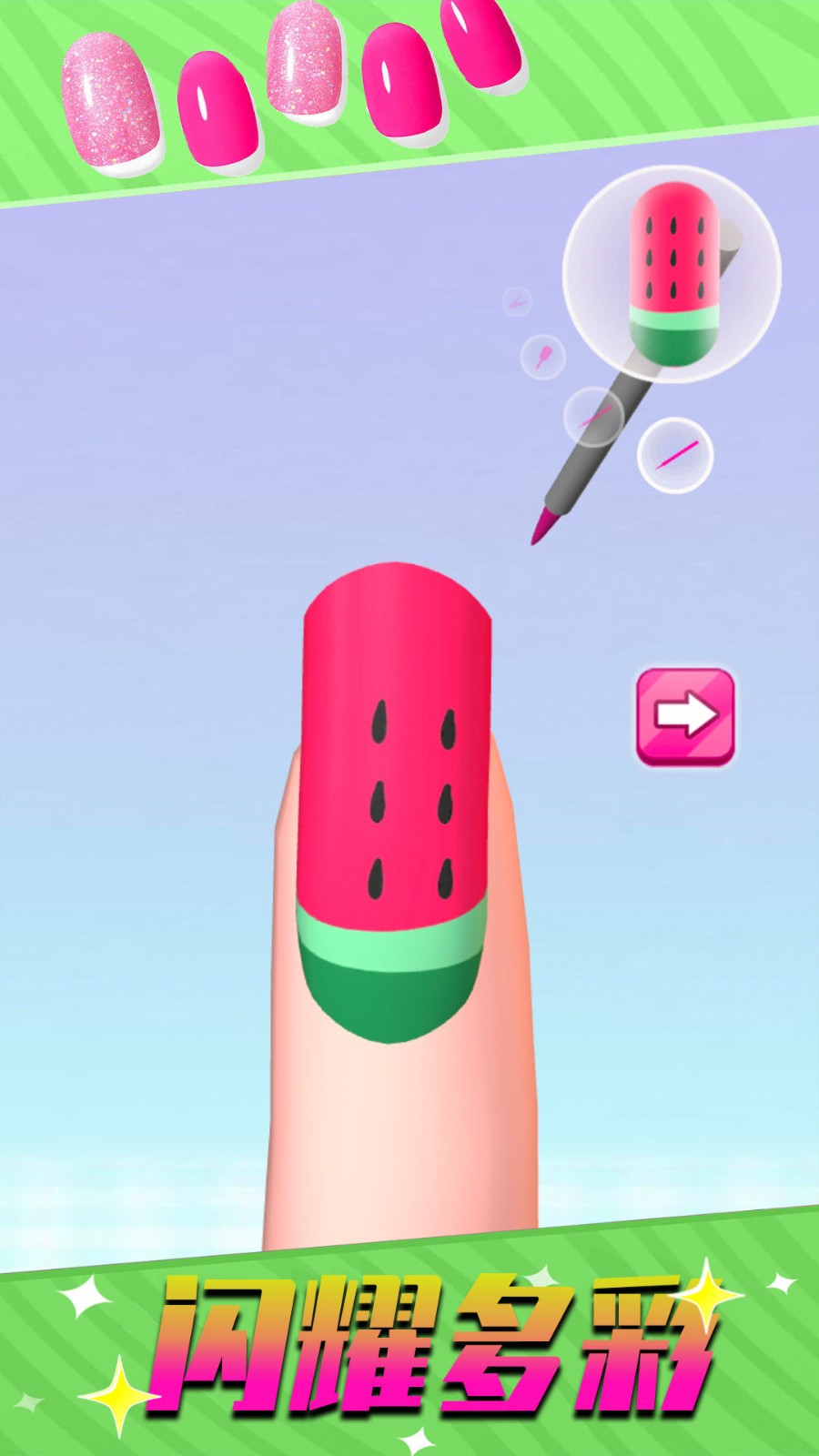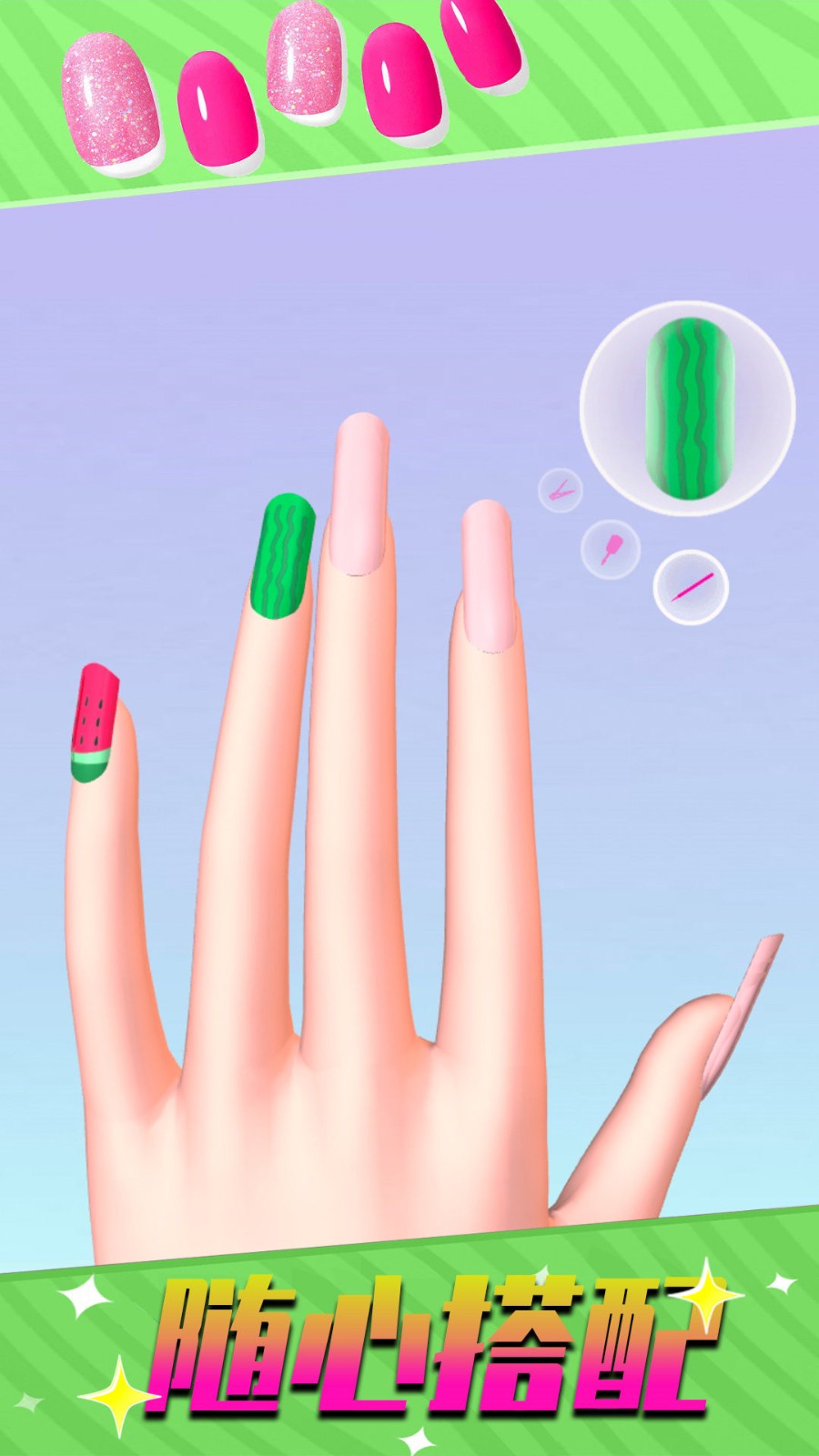 可以在游戏中设计和装饰自己的指甲,可以选择不同种类的美甲款式,并可以进行各式各样的装饰,如贴上漂亮的宝石、随意涂上炫彩的颜色、添加可爱的贴纸等等,让您的美甲更加独特、时尚。