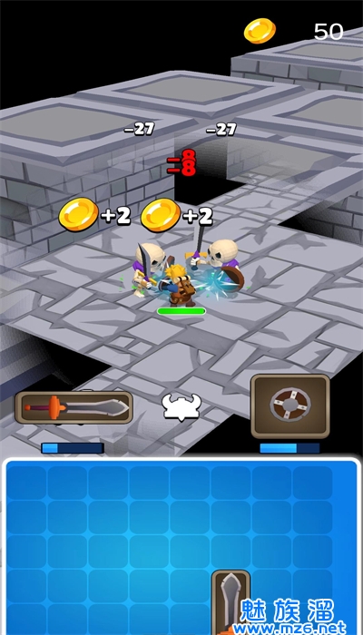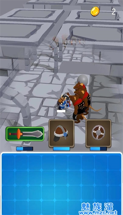 1、玩家扮演勇者深入地牢,通过劫掠怪物获得武器,并在战斗中合并提升战斗力;