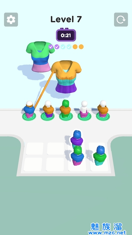 1、游戏玩家需要通过排列绳索的顺序,在限定步数内让所有绳索不重叠,不交叉地顺利到达目标区域。