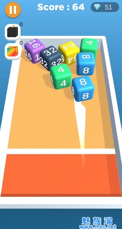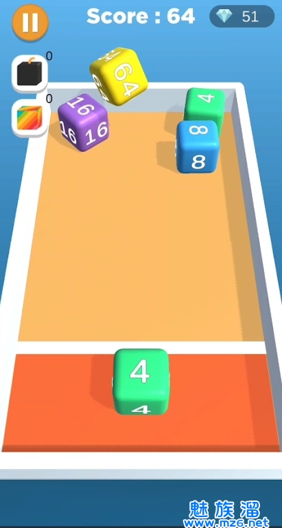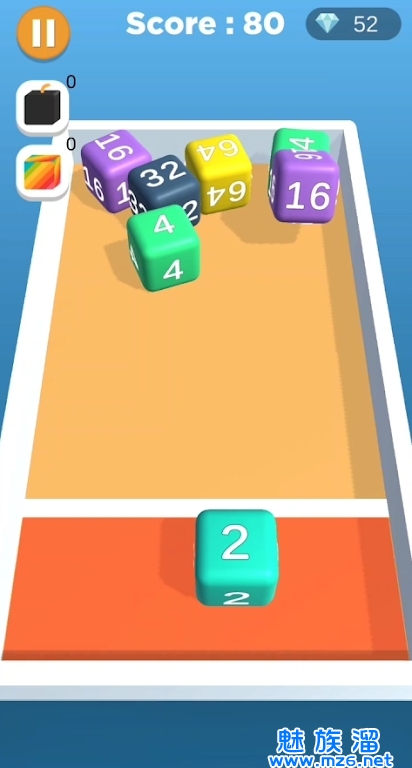 2、玩家需要将四个相同数字的立方体合并成一个更大的数字,直到最后合成数字为4096的立方体为止。