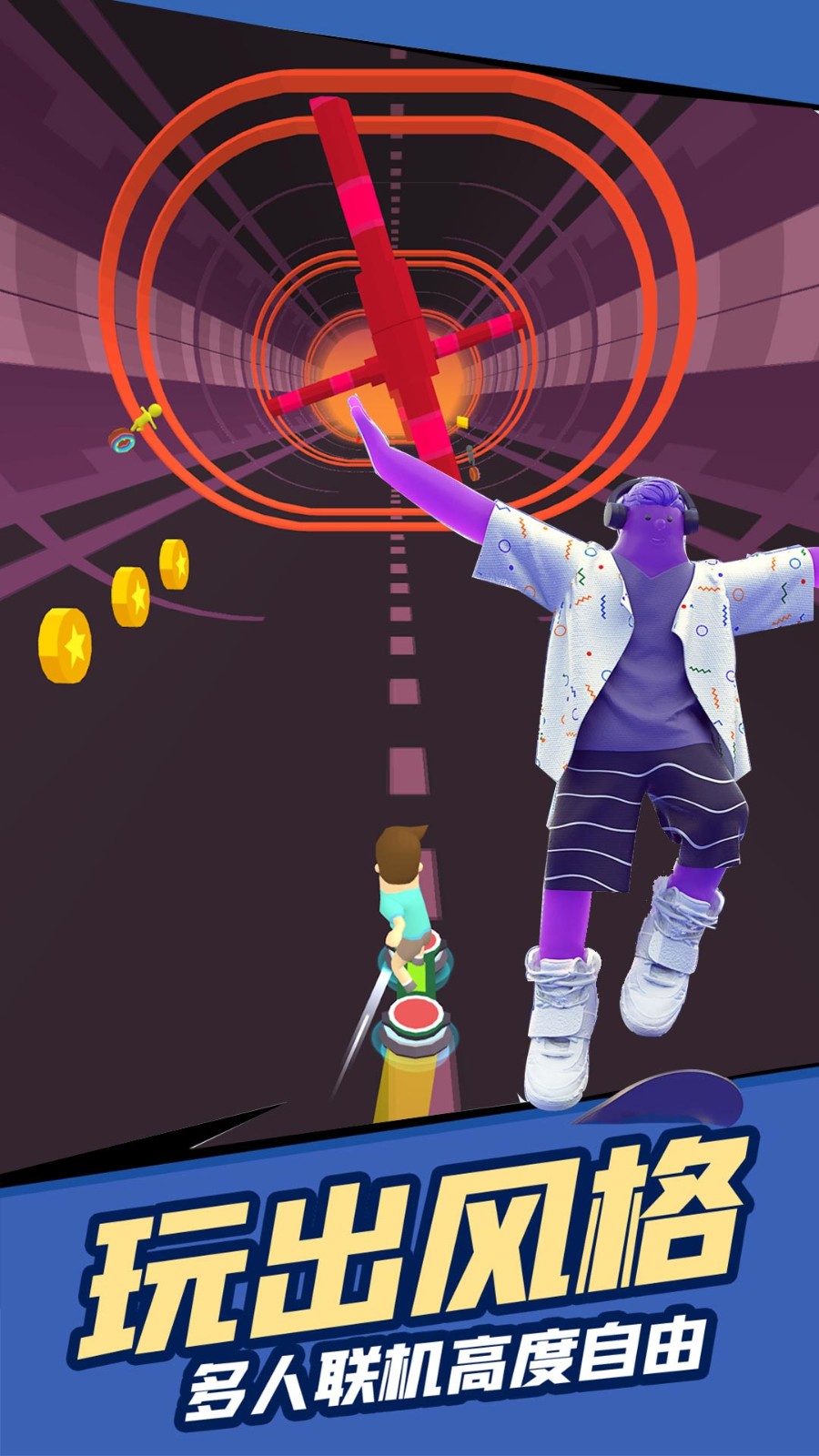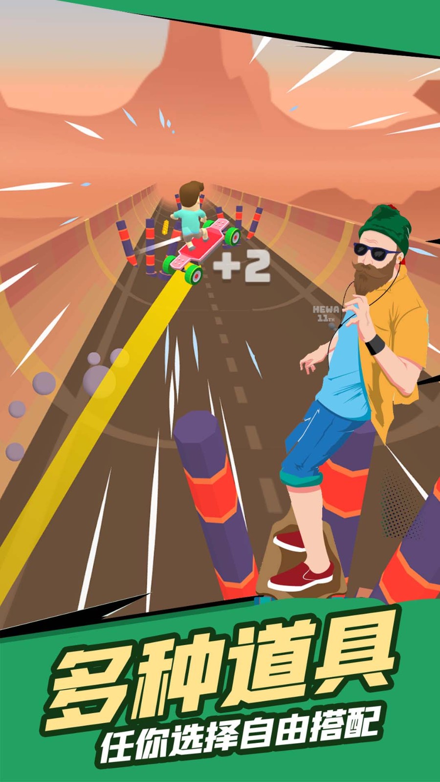 1、操控Q版少年灵活躲避障碍物,跳跃、翻滚、滑翔,展示精湛滑板技艺;