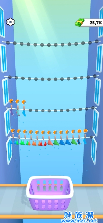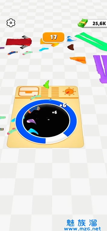 2、游戏中,你需要扮演一名勇敢的洗衣工,通过控制洗衣机滚筒的移动来将各种衣服丢入黑洞中,