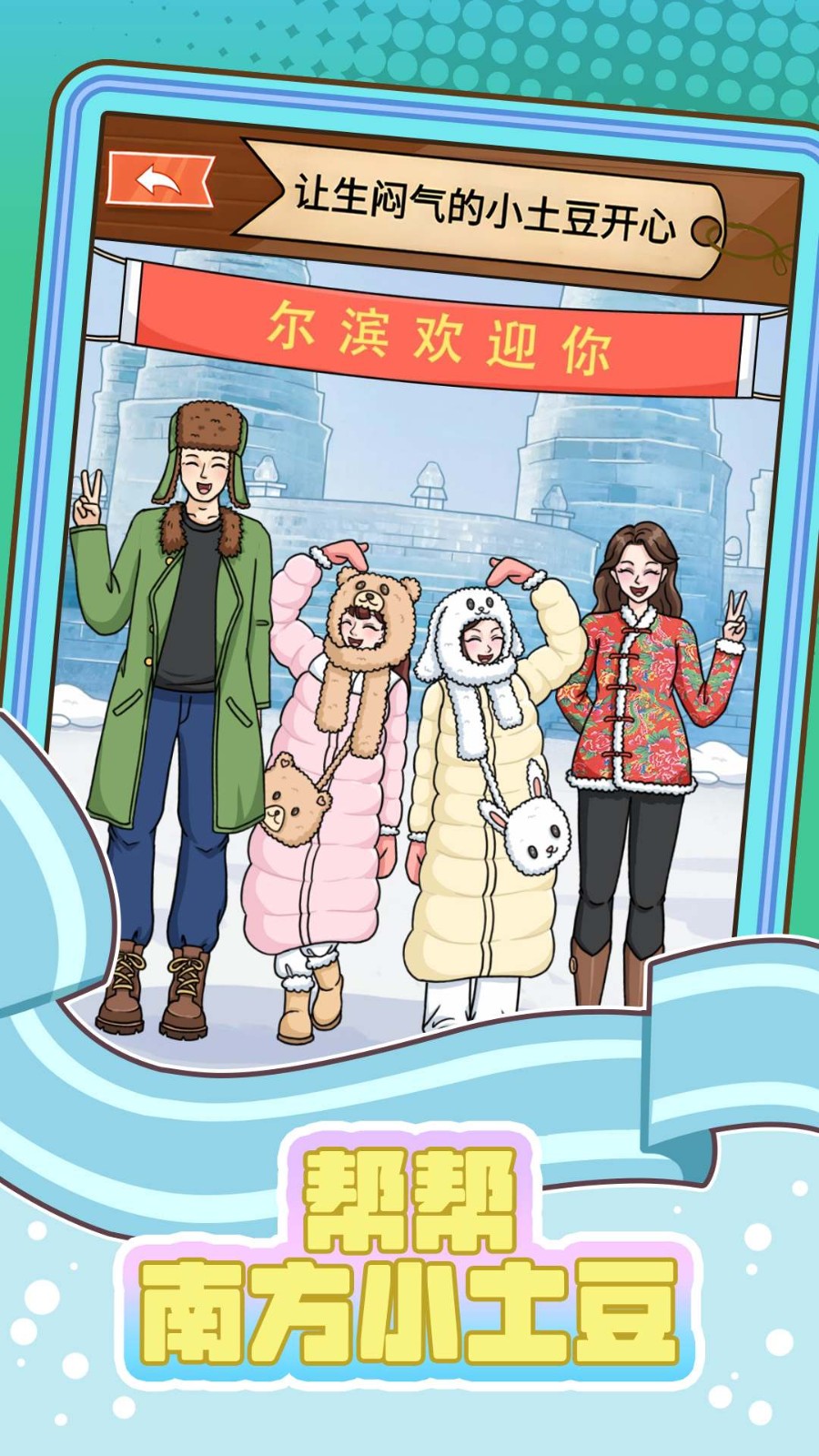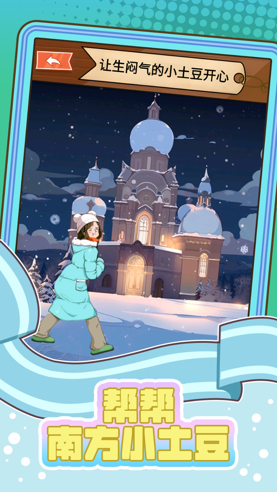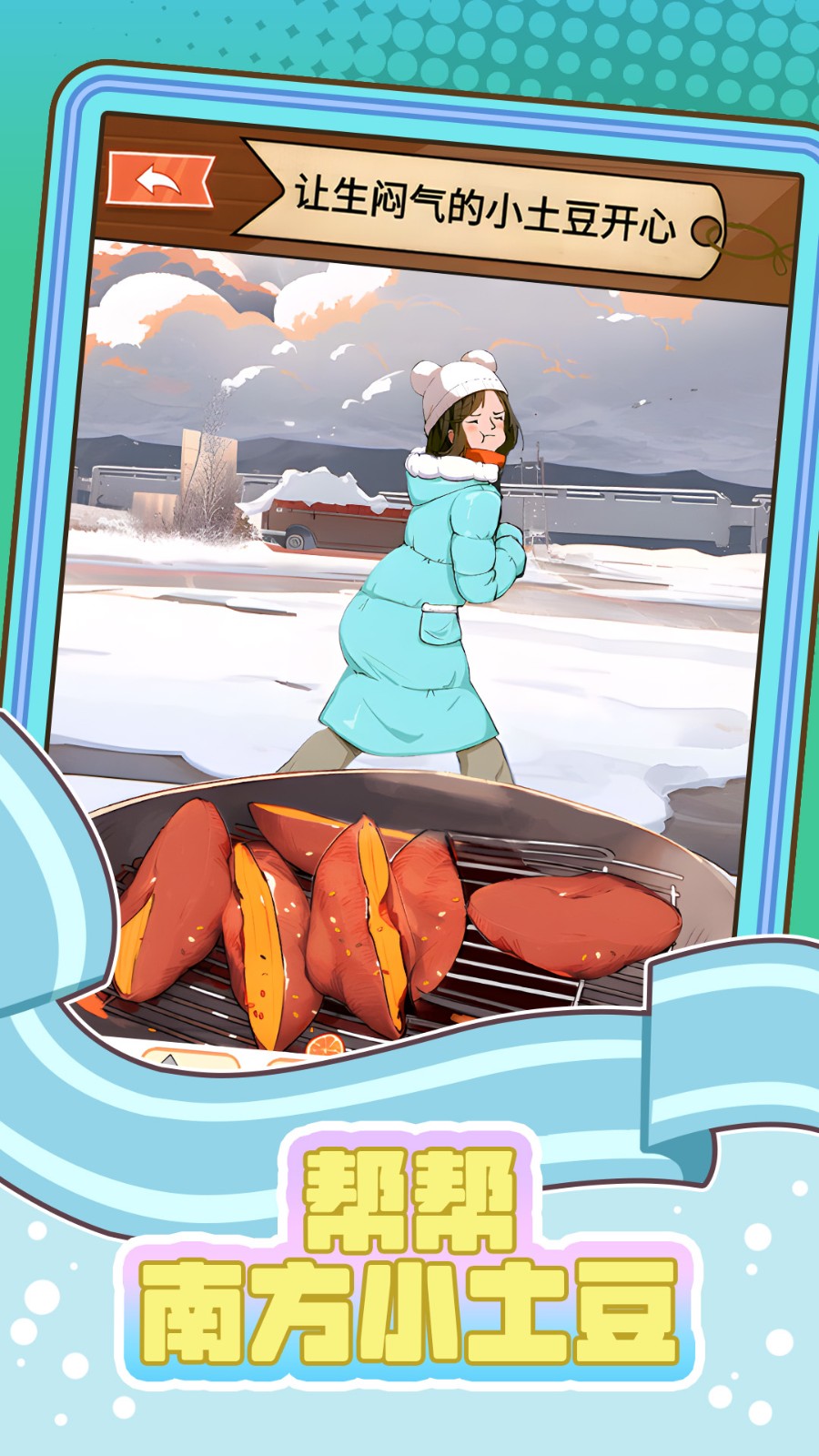 帮帮南方小土豆是一款休闲益智类解谜小游戏,游戏以当前最热门的南方小土豆为主题,每一个关卡中的小土豆都会面临不同的问题,玩家作为一名冻梨,需要帮助南方小土豆解开一个又一个难题,让它们拥有一个优质的旅游体验,快来试试吧。