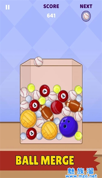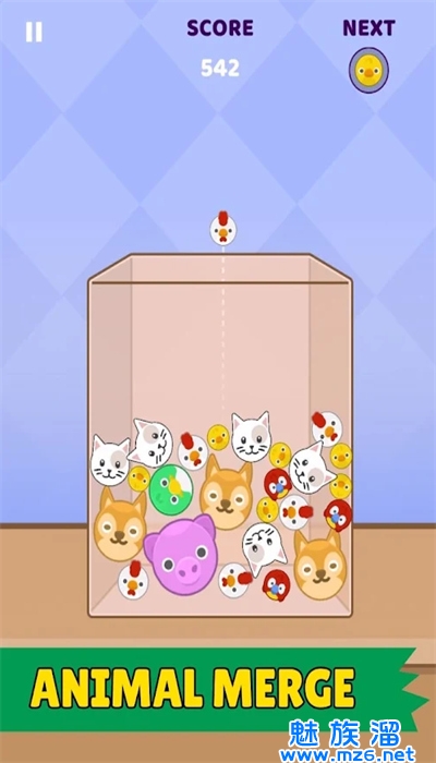 1、休闲闯关游戏,将下落的物体合并为更大的物体。