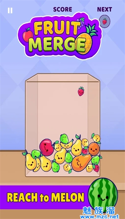 1、滑动屏幕将相同的水果进行合并,合成更高阶的水果以获得更多积分;