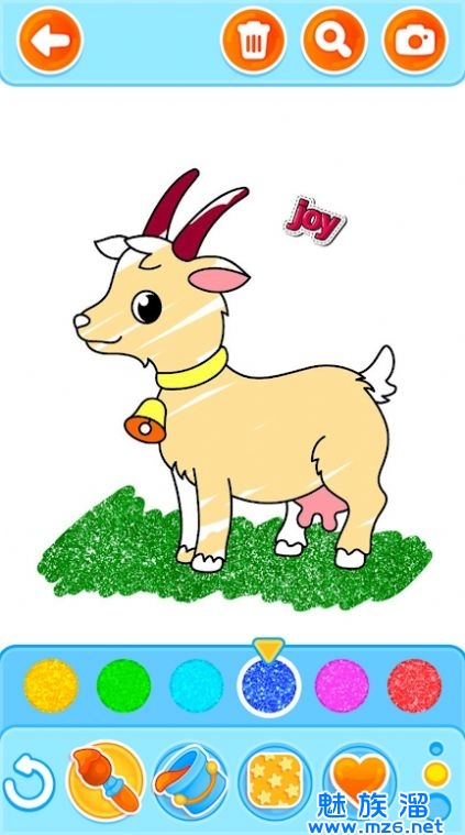 1、选择喜爱的农场动物线稿,点击或滑动屏幕为动物填充多彩的颜色;
