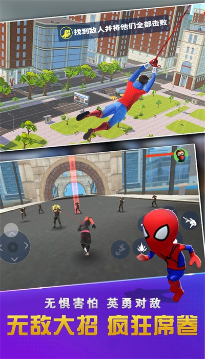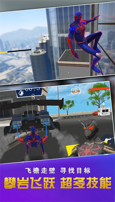 1、扮演蜘蛛侠在高楼大厦间自由飞荡,快速响应突发事件,守护城市和平;