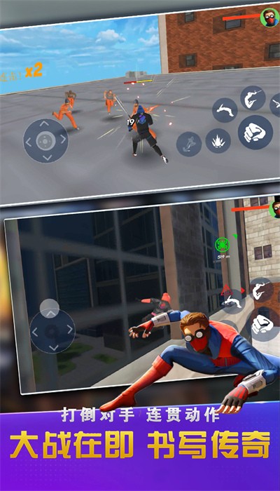 2、创新动态战斗系统,模拟蜘蛛侠独特超能力,空中缠斗淋漓尽致;