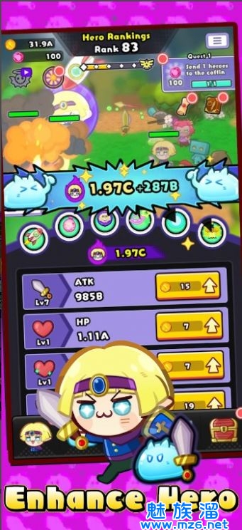 1、体验精彩的战斗,开启一段勇者的冒险旅程,击败一个个魔物。