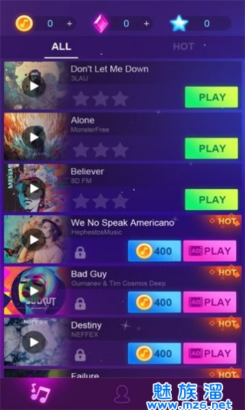 1、是动动手指来跟随着音乐点击屏幕上琴键的休闲闯关游戏,