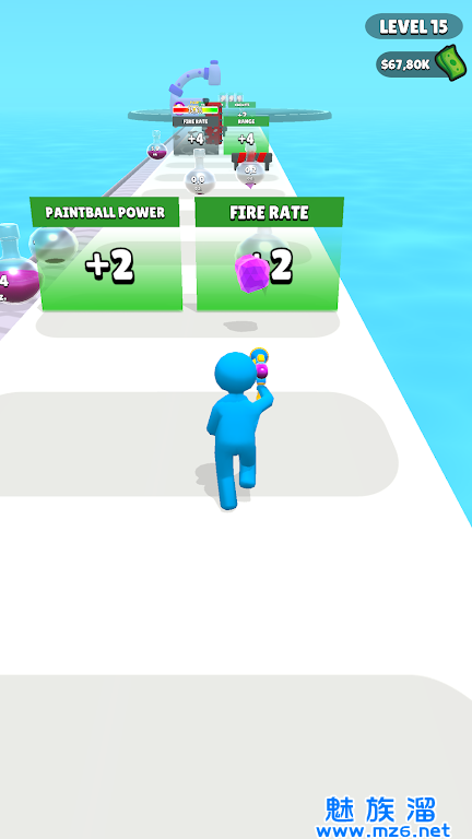 1、跑、跳、闪避和发射不同颜料这种独特的玩法,打破了传统跑酷游戏的模式;