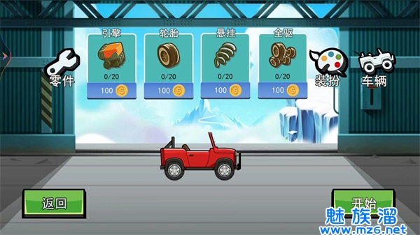 2、赛车定制系统,自定义车辆性能与外观,打造独一无二的登山赛车;