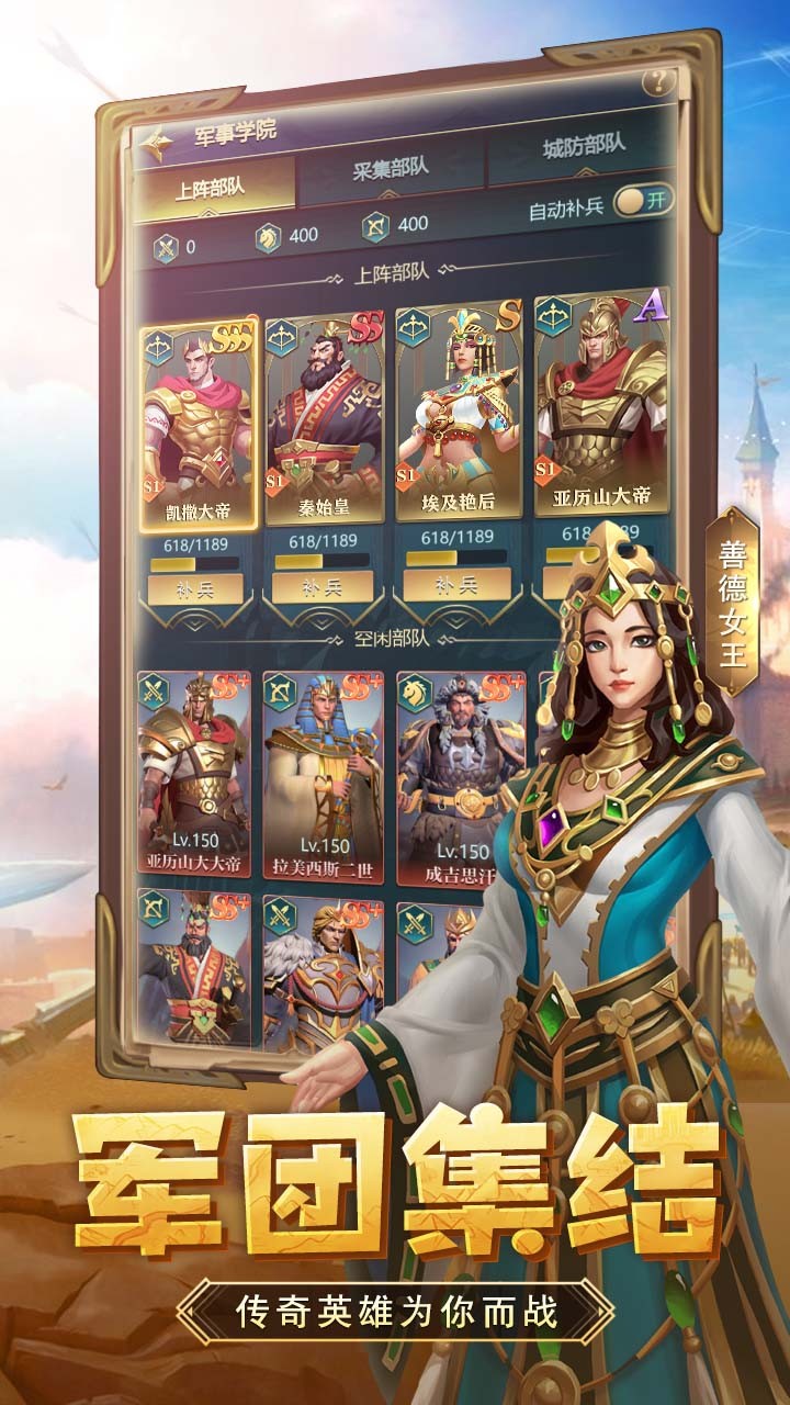 有了军队,自然少不了将领,这里有多文明的英雄领袖等待着你的召唤。你可以选择带领他们横扫战役关卡,收获丰富道具奖励。也可指挥他们率兵出城征战,为你横扫沙场,威震寰宇。