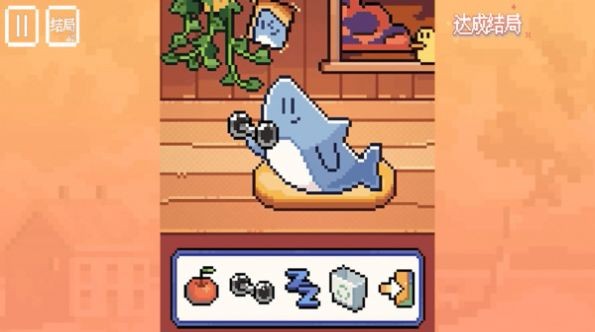 2、像素的画风,有趣的玩法,每天你都可以与鲨鱼互动和对话;