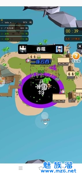 1、继续控制你的黑洞吞噬各种物体,扩大你的体积,吞噬所有玩家!