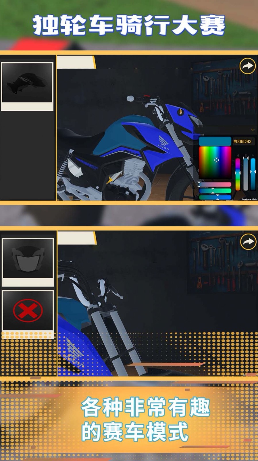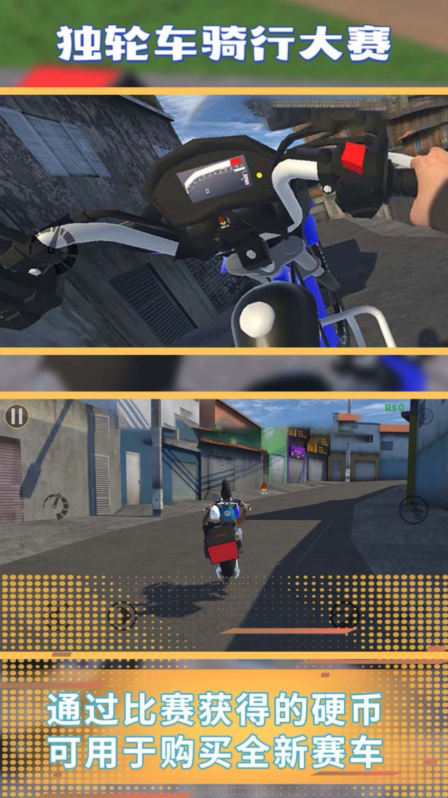 独轮车骑行大赛是一款角色扮演类模拟驾驶游戏,游戏中玩家将会扮演一名独轮赛车手,在各个不同的场景、赛场中进行自己的赛车竞速挑战。通过不断的赛车竞速来提升自己的驾驶能力,获取游戏奖励,解锁更多性能更加优秀的独轮车,让玩家挑战难度大大降低。
