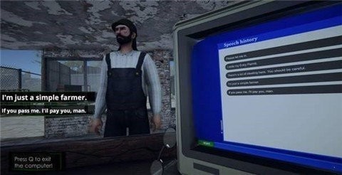 玩家拥有着自己的车和住所,玩家通过驾驶车辆进行巡逻到达指定地点审核每一个前来申请人的信息最后做出合理的判断。