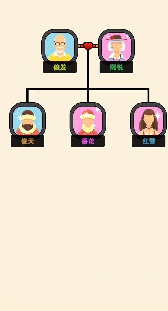 根据给定的家族成员信息,将他们正确地连接在关系树上,顺利的连线过关;